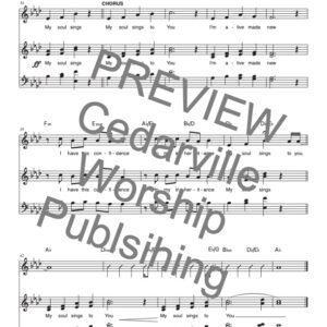Purchase and download the PDF SATB & WL chart for My Soul Sings by Ellie Giordano and Emma Haylett (in Ab). This joy-filled worship song, arranged by John Chilcote, is based on the recording by Cedarville Worship. The SATB choir parts add a vibrant layer to any worship setting. Written in the key of Ab, this sheet music provides an engaging and inspiring experience for your next worship service.